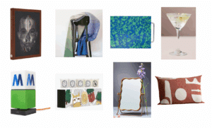Top Row: Alexander McQueen: Savage Beauty, Seek & Swoon Manzanita Ombré Throw, Fredericks & Mae Confetti Cutting Board, Candle Lume Dirty Martini Glass Candle Bottom Row: Only NY x MTA NYC Subway Table Lamp, Diptyque Set of 5 Mini Candles-Holiday Edition, Anthropology Coquille Vanity Mirror, ANŪT Cairo Glyph Cushion